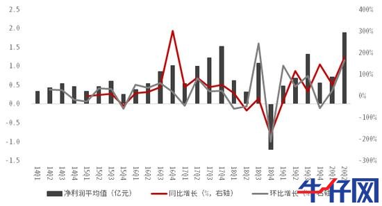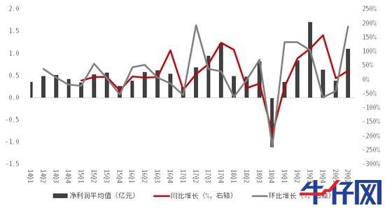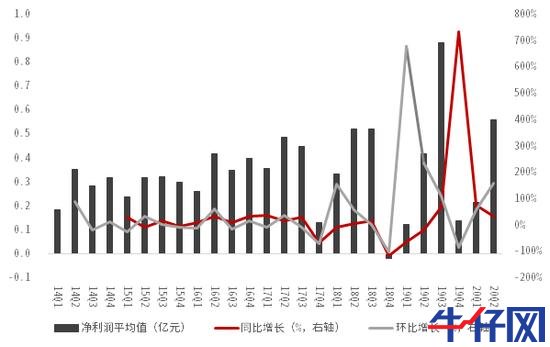 2014Q1-2020Q2計算機(jī)板塊平均凈利潤概況