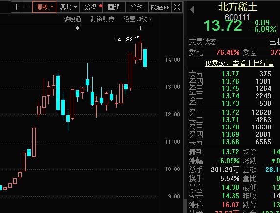 不過周一板塊內出現了明顯分化,北礦科技(行情600980,診股)、龍磁科技(行情300835,診股)、北方稀土、廈門鎢業(行情600549,診股)、五礦稀土等前期漲幅較大的股票走勢較弱,而科恒股份、金力永磁、五礦發展(行情600058,診股)等處于相對低位的股票漲幅居前。