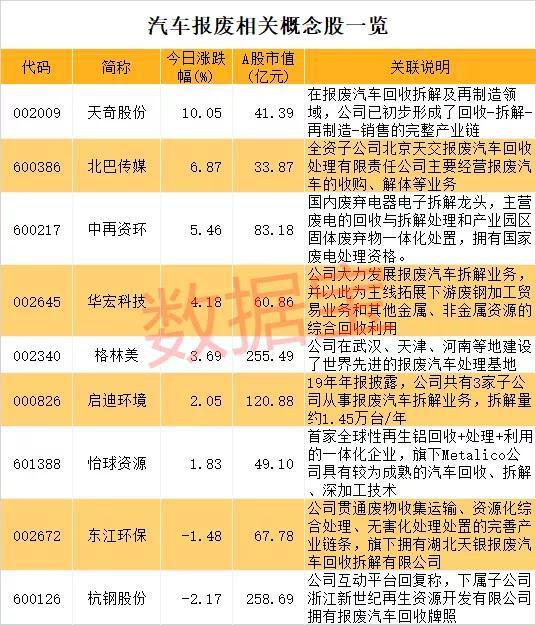 汽車報廢市場空間超千億:概念龍頭逆市漲停 受益股僅9只(名單)
