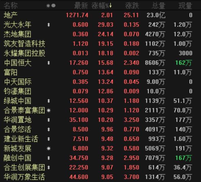 在南國(guó)置業(yè)(行情002305,診股)預(yù)告2020年度業(yè)績(jī)扭虧之后,股價(jià)連續(xù)5個(gè)漲停,徹底引燃了沉寂許久的房地產(chǎn)股做多熱情。周二房地產(chǎn)板塊指數(shù)逆市放量大漲2.24%,我愛我家(行情000560,診股)、中房股份(行情600890,診股)、北辰實(shí)業(yè)(行情601588,診股)、沙河股份(行情000014,診股)等漲停。港股房地產(chǎn)板塊周二也大幅拉升,恒生地產(chǎn)指數(shù)漲4.12%,其中細(xì)分的恒生內(nèi)地地產(chǎn)指數(shù)一度暴漲近9%,中國(guó)恒大飆升15.68%,綠城中國(guó)、合景泰富集團(tuán)、華潤(rùn)置地等均大幅拉升超10%。