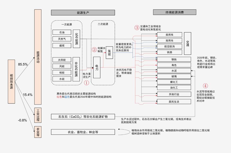 第三,鋼鐵、建材、交通等能源消費部門,將進行大規模的電動化和氫能化改造;